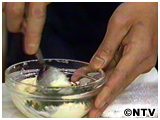 無塩バターに、エシャロットみじん切り、おろしにんにく、パセリのみじん切りを混ぜて、ガーリックバターを作る |