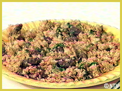 How1のガーリックバター(大さじ1)と千切りの大葉を加えて混ぜ合わせる |