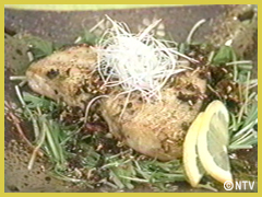 かじきまぐろに塩・こしょうをし、オリーブオイルでソテーする。 |