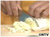 キャベツ・ニラを粗めのみじん切りにする。 |