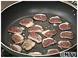 鴨肉をフライパンで焦げ目が付くまで焼き、塩、こしょうを軽くふる。 |