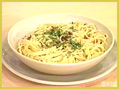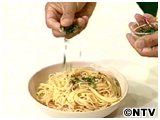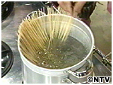 たっぷりの湯に多めに塩を加えスパゲッティ(細目)を茹でる。 |