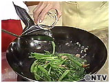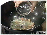 鍋に葱油(小さじ1)、みじんねぎ、干しえび、にんにく、しょうが、砂糖、塩、スープを加えて火にかける。 |