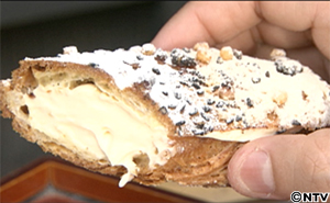 和と洋が見事に融合したスイーツ「柴又エクレア」に石ちゃん大満足。