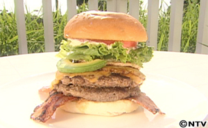 トッピングを全部のせた豪快ハンバーガーに