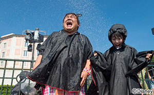 大量の水を放ちあいバトルを繰り広げるびしょ濡れ必至の
