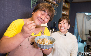 自家製のすき焼きの割下を蒸した牡蠣にかけてバーナーで炙り、