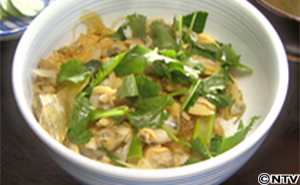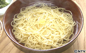 釜あげ豚を入れて、脂が溶けることで味の変化を楽します。