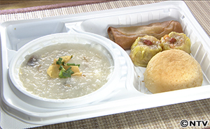 内容:塩豚のお粥 ピータンと塩卵入り、ベイクド チャーシューバオ、