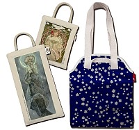 タイニールー (3種) ¥1,380(税込) 《夢想》など華やかなミュシャ作品を表裏にプリントしたトートバッグ型電子マネーカードケース。サイドのファスナー付きルーポケットに電子マネーカードを入れ、センサーにかざして使用できます。