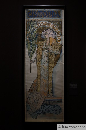 こうして多くの芸術家を愛し、愛されたサラの私生活は実に豪快、女傑と言いたくなる大胆さです。恋多き女として知られ、生前から“スキャンダルの女王”でした。恋愛関係を取り沙汰された相手は両手に余ります。サラは醜聞すらも自らの名を広める手段だと考えていたのかもしれません。彼女は71歳のとき、舞台でのケガがもとで片足を切断しましたが、その後も座ったまま演技するなどして活動を続け、78歳のとき映画の撮影中に倒れて亡くなりました。文字通り舞台に生き、舞台で死んだ女優です。彼女のモットーは「Quand Même」、それでもなお、というものでした。どんな逆境や困難にも負けない不屈の精神を現しています。こんな“女傑”に見出されたミュシャの強運を感じずにはいられません。