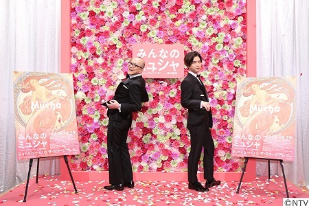 公式HPでもお知らせしましたが、6月4日(火)に「みんなのミュシャ」オフィシャルサポーターが決定、記者会見がありました。俳優の千葉雄大さんと、西洋美術の深くて広い知識でおなじみの山田五郎さんです!千葉さんはNHK連続テレビ小説「わろてんか」、映画「スマホを落としただけなのに」などに出演、今回の「みんなのミュシャ」では音声ガイドも務めることになりました。しかも千葉さんがミュシャになりきって語りかけてくれるのです。前世紀初頭のパリやプラハで活躍したミュシャが現代日本に蘇り、素敵な声で何を教えてくれるのか、今から楽しみです。