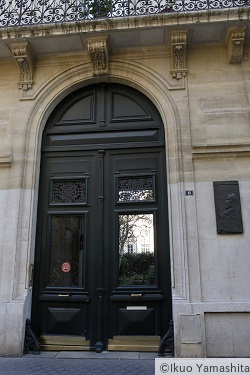 ミュシャはパリでいくつかのアトリエを転々としましたが、その一つが今もパリに残っています。閑静な住宅街、ヴァル=ド=グラース街の一角にあるアトリエはミュシャが最後に使っていたもの。吹き抜けになった高い天井のある、広々としたスペースです。ミュシャのあと、画家で舞台美術家のダニエル・ルラドゥールさんがアトリエにしていました。2007年に彼が亡くなったあとはインテリアデザイナーの奥様が住まわれています。ルラドゥールさんも国民的な芸術家でした。アトリエのある建物には彼の名前を記したプレートがかかっています。