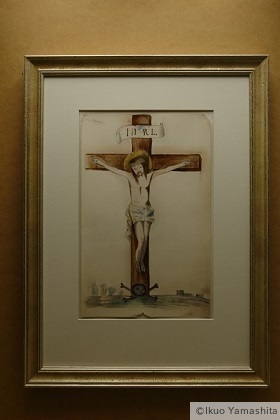 この磔刑図はあんまり上手じゃないなあ、なんでこんなものが展示されているんだろう、と思ってよく見たらミュシャが子供のころ描いたものでした。年代ははっきりしませんが、おそらく8歳頃と思われるそうです。8歳ならかなり上手なほうじゃないですか。これは大変失礼しました、という気持ちになりました。美術館のパンフレットによるとミュシャは歩くより先に絵を描き始めたのだそう。お母さんはそれを見て、はいはいしながらでも絵が描けるよう首に鉛筆をくくりつけたのだそうです。これはほんとかな……、と思ってしまうエピソードですが、おそらく本当なのでしょう。禅寺に預けられた雪舟が絵ばかり描いているのをとがめられ、柱に縛りつけられていたのに、床に涙でねずみの絵を描いたという話も思い出します。