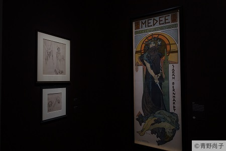 オフィシャルサポーターの山田五郎さんは「印刷だとわかりにくい、金や銀のインクの輝きを実物で確かめてください」と教えてくれました。佐藤さんは「ミュシャはあまりに有名なので作品も資料も出尽くしたと思われていますが、ミュシャ財団には彼が書いた芸術論なども含めて膨大な資料があり、その50%しか研究が進んでいません。今後、残りの50%の調査が進めばこれまでとは違う解釈が出てくるかもしれません」と言います。ミュシャの孫であり、ミュシャ財団理事長のジョン・ミュシャさんは「祖父は芸術を通じて国や人の間に橋をかけようとしていました」と語りました。会場にはミュシャのスケッチやポーズの参考にした写真なども展示され、彼の技量の高さを確かめられます。レアな資料も多く、かなり密度の濃い展示です。ミュシャ作品の奥の深さに、そして時代を超えて影響を及ぼす幅の広さに改めて驚かされます。