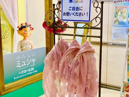 ミュシャ作品の女性になりきれる衣装も無料で貸し出しています。汐留にお越しの際は、是非お立ち寄りください。