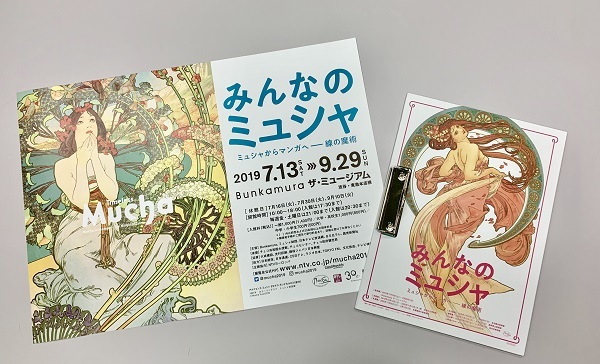 これを記念して、9月3日(火)、4日(水)、5日(木)の3日間限定で、「みんなのミュシャ ミュシャからマンガへ ― 線の魔術」へご来館のお客様各日先着60名様に、本展特製クリップボード(非売品)、または本展ポスター(B3サイズ・非売品)を各30名様にプレゼントいたします。