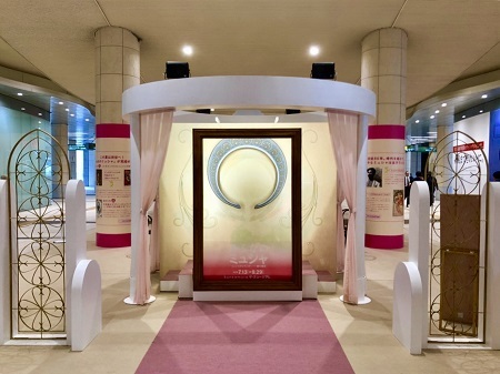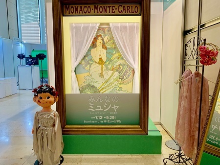 ミュシャの世界観を体験できる素敵なフォトスポットで、ペコちゃんと一緒に写真が撮れます!