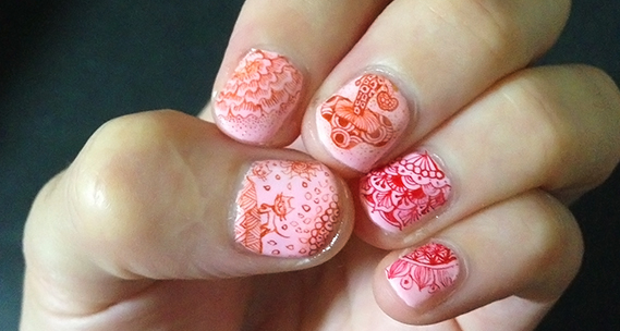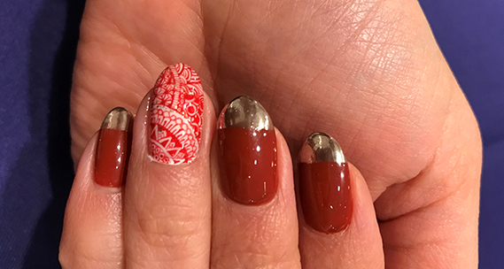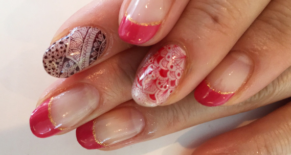 「九谷焼」の中でも、最も繊細な絵を描く技法「赤絵彩描」をネイルに描いている。