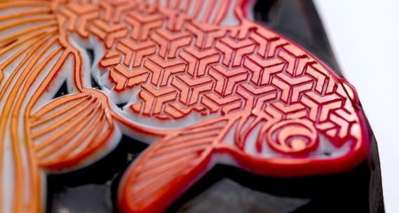 中学の時、友人が誤って小刀で消しゴムを刺してしまい捨てるのが惜しくてイタズラ気分ではんこを彫ったのが始まり。主に鉱石や生き物をモチーフに0.1ミリ単位の細かい図案を手掘りで彫っている。