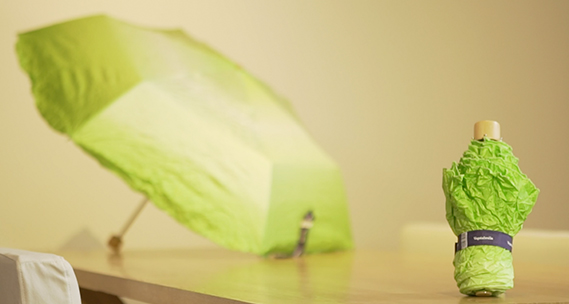 レタスのフリルのような葉の可愛いらしさに着目。サイズ感や水を弾く姿が折りたたみ傘にマッチすると考案。きっちり畳まずにラフな方がリアルなレタスに見える。プレゼントとして使う人も多く、男性からも人気がある。
