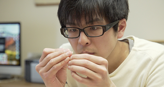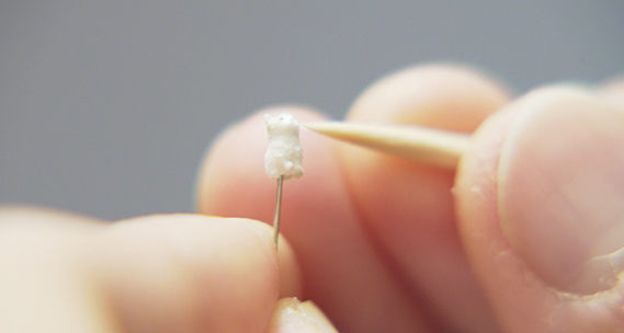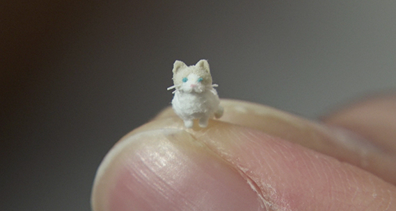粘土作家として、小ささの限界を突き詰めていった作品が「5ミリ粘土」。パーツは1ミリにも満たない。少し細かったり、太かったりでイメージが凄く変わるので難しいが、そこが面白い。ため息でパーツが飛んで紛失することもある。