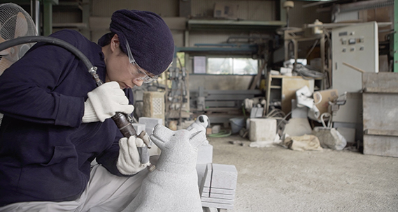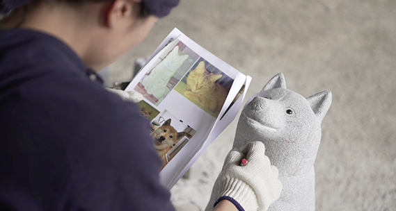 実家の石材店に、亡くなったペットを石像にしてほしいという依頼があったのがきっかけ。顔を似せるだけでなく、生前の特徴を活かして、まるでそこにいるように彫り上げていく。ペットロスの方が、毎日石像を撫でてだんだん元気になったなど、感謝の言葉が届くのが本当に嬉しい。