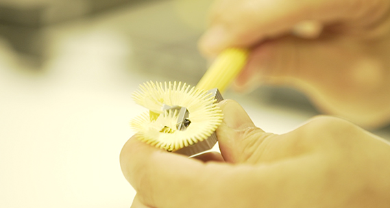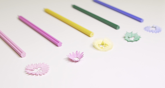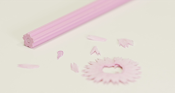 鉛筆の形がどれも同じだなと思っていた。そこでテーマを花の形にして、削ると花びらにもなる、2つの面白い特徴がでる鉛筆を考案。日本の代表的な花をモチーフにした。桜の鉛筆は、削りカスも桜の花びらのようになる。