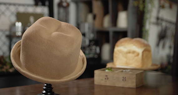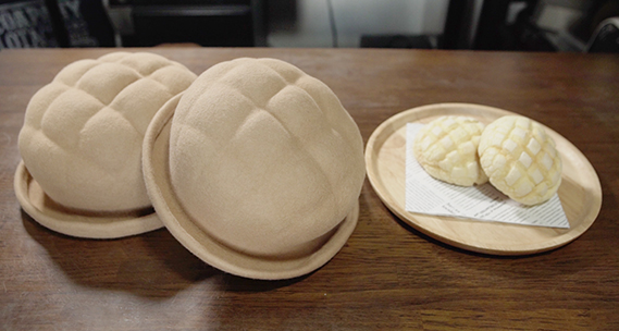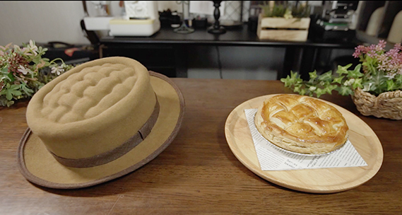帽子の種類にもっと遊び心があってもいいと感じていた。日常に寄り添う食べ物として、パンを身につけるのも面白いと考案。メロンパンやアップルパイをリアルにデザインし、さらに機能性を保つのが難しい。
