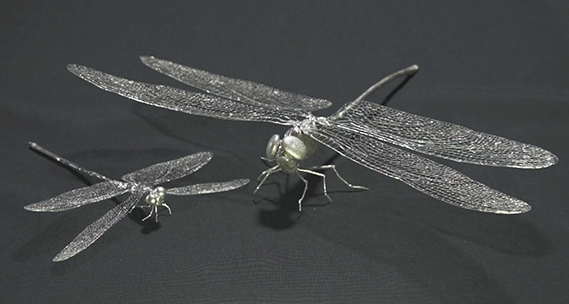 昔から機械いじりが好きだった。「はんだ付け」を使ったアートコンテストがあると知り応募、半年かけて作成した鳥の作品が見事優勝。0.1ミリ程の銅線を1本ずつ並べ、はんだ付けして作った羽根を、本物の鳥と同じように1本ずつ指しながら作っている。他にも、審査員特別賞を受賞した「トンボ」。銅線をはんだでつなぎ合わせ、透明感のある羽根を再現している。