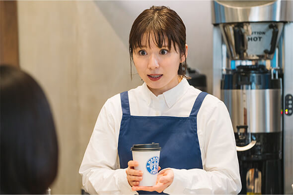 お客が自由にカスタマイズできるのが人気のハーピーズカフェ。遥香(松岡茉優)は新人研修を経ての勤務初日。「ショート・ソイオールミルク・アドリストレットショット・ノンシロップ・チョコレートソース・アドホイップ・フルリーフ・チャイティーラテ…」 〝呪文〟のように長いカスタマイズ注文をしてくるクセが強い客に翻弄されながらも成長していく遥香。その日、最後に現れた客の意外な注文に――。