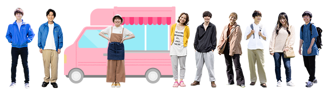 そこにやって来た1台のフードワゴンと、そこに並ぶ6人の男女+従業員2名。