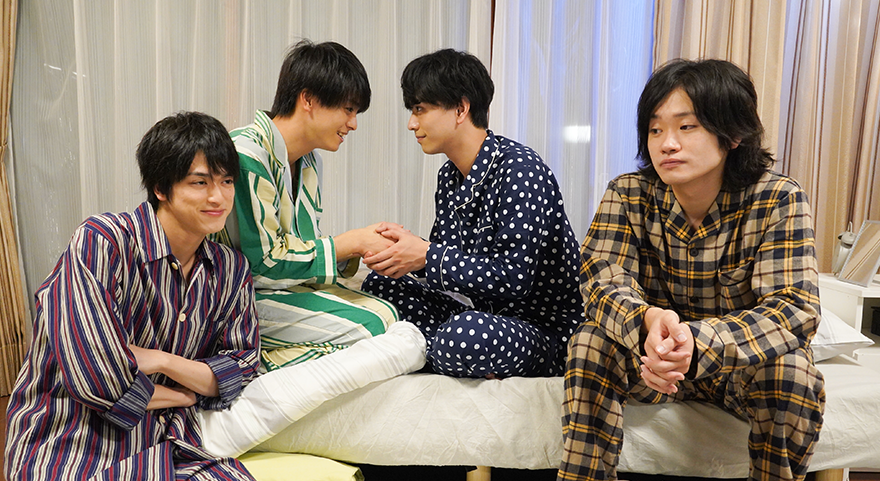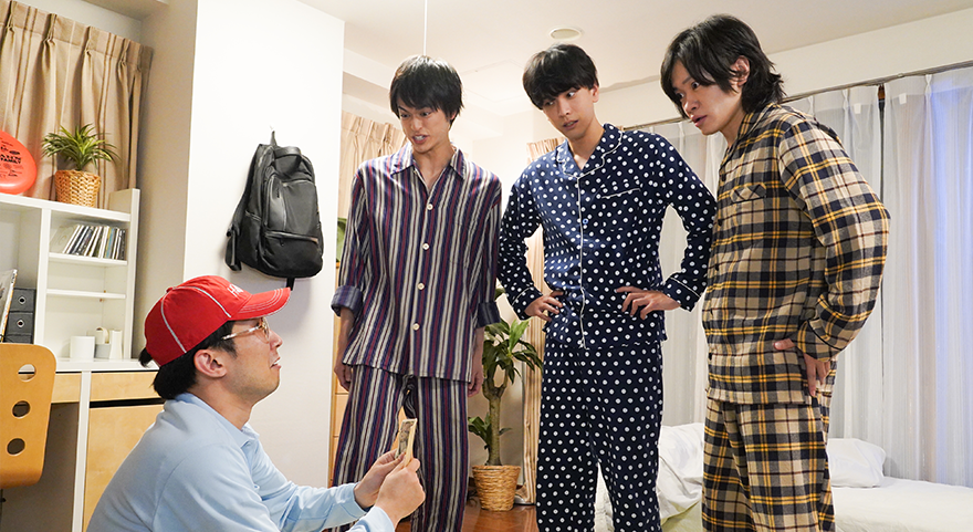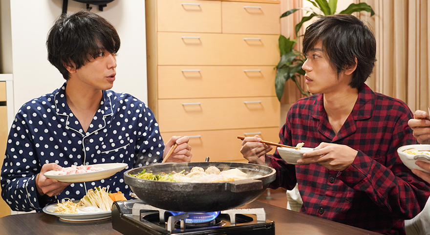 - 長男・唯一(黒羽麻璃央)の会社の後輩・楢原(高橋健介)がやって来て、次男・天授(鳥越裕貴)、三男・ガイ(眞嶋秀斗)も含めて4人で一緒に鍋を囲むことに。床に座って鍋を食べるのは初めてだという楢原から、悪気はないけどちょっと失礼なマイペース発言がどんどん飛び出し…。なんだかガイと波長が合うみたい!?