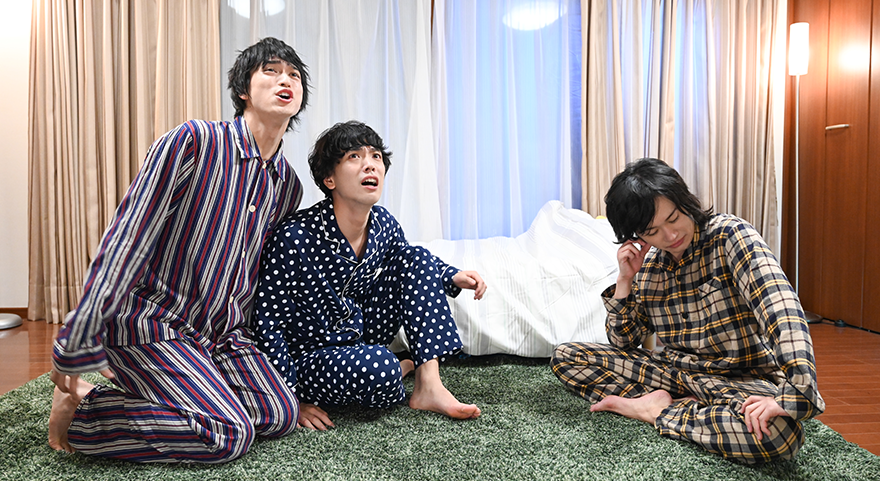 - 毎晩一緒に寝ている唯一(黒羽麻璃央)、天授(鳥越裕貴)、外(眞嶋秀斗)の三兄弟を取材するためにやって来た、天授の友人・江連(田村心)。「家族」をテーマにした大学のレポートとして、仲良く三人で寝る兄弟のリアルな姿を映像作品にするのだとか。しかしいざ撮影が始まると礼儀正しかった江連がひょう変!あたふたする三人に激しくダメ出し!ドキュメントの行方は!?