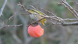 「柿の木に集う野鳥」