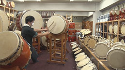 「長胴太鼓の皮張り」