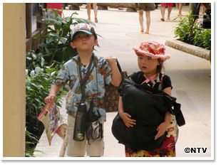 兄の天馬(てんま)くん(5歳3か月)と、しっかり者の妹、心(こころ)ちゃん(4歳3か月)のコンビです。おつかいは、ハワイアンズの中にいるお父さんに制服を届けること。