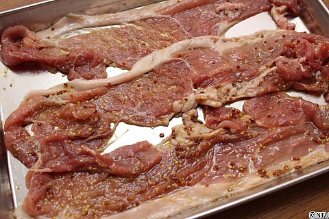 ポイントは、豚肉に調味料をからめたら、10分以上置き、味をなじませること。