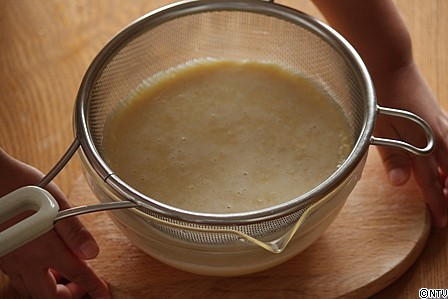 4.鍋に戻して火にかけて牛乳を加え、必要なら塩で味を調える。