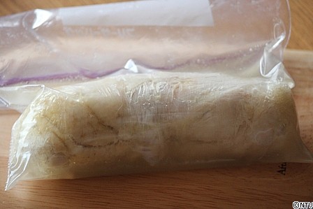 空気を抜いてしっかりと縛る。冷蔵庫で一晩~1日おく。