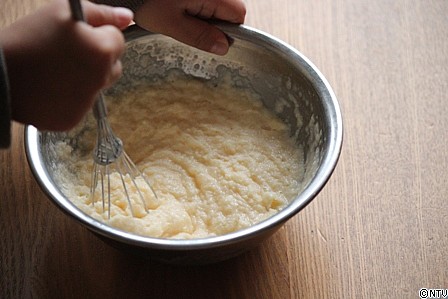 泡立て器(ハンドミキサーでも)でしっかりと混ぜます。