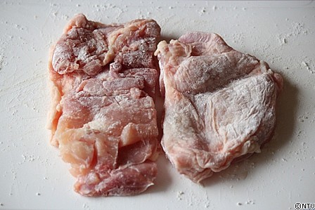 鶏もも肉 1枚、小麦粉 適宜、サラダ油 小さじ1、