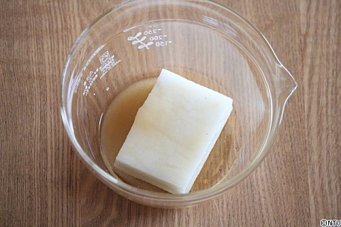 1.耐熱皿にお餅・水・砂糖を入れ、電子レンジ(600W)で40秒~1分加熱する