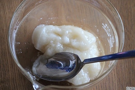 スプーンの背などで水分とお餅をなじませうように練る。