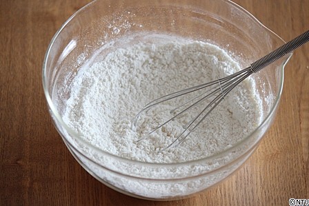 1.ボウルにAを合わせてふるい入れ、砂糖を加えて泡だて器で混ぜる。