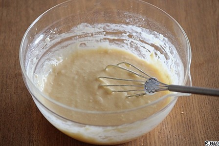 ☆生地をすくうとぽってりと落ちるくらいの、少し固めの生地にします。