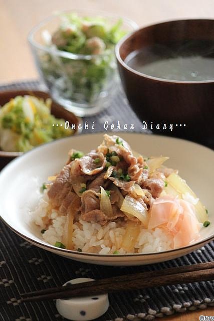玉ねぎと一緒に煮たら、しっかり「豚丼」(豚肉で作ったので。)になりますね。