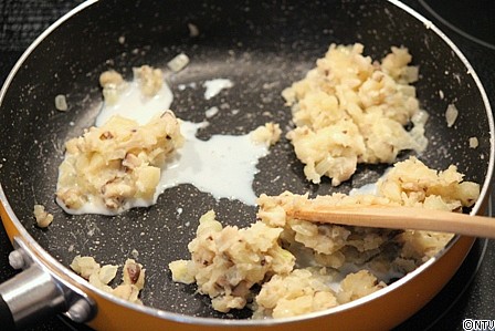 ☆フライパンの底からつるんと離れるくらいになったら次の牛乳を加えてくださいね。