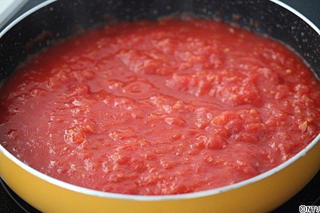 クリームコロッケに使ったトマトソースは違う作りかたをしていたんです(トマト缶を裏ごしして作りました)。これがなかなか思うような仕上がりにならなくて。。。でも。このトマトソースでももちろんO.K.です!