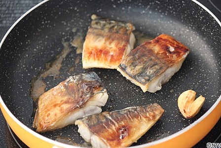 4.サバを裏返してじっくりと焼く。取り出しておく。